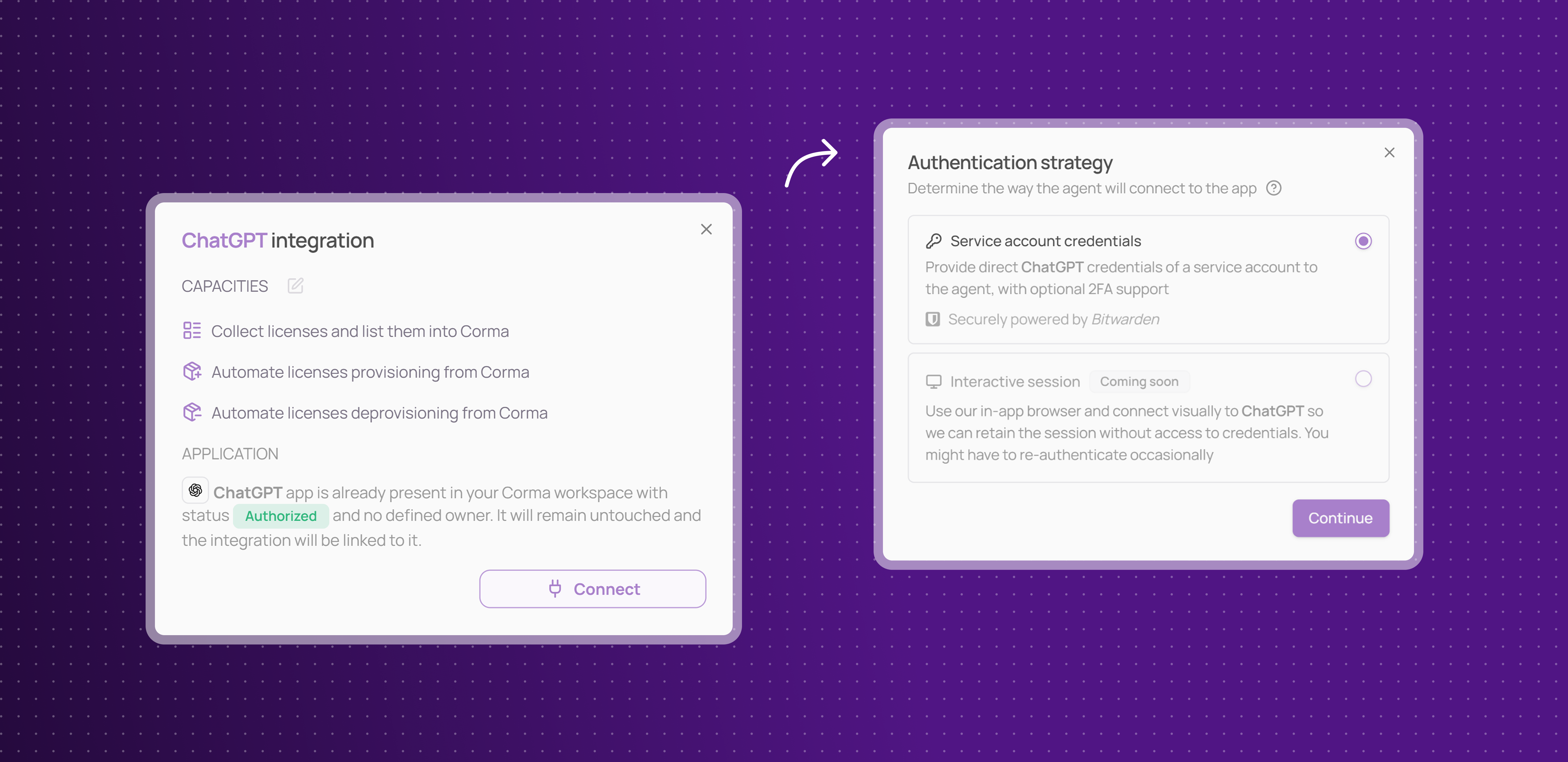 Provisioning & deprovisioning: Automatically assign and revoke Deskpro access directly from Corma to effortlessly manage your licenses use