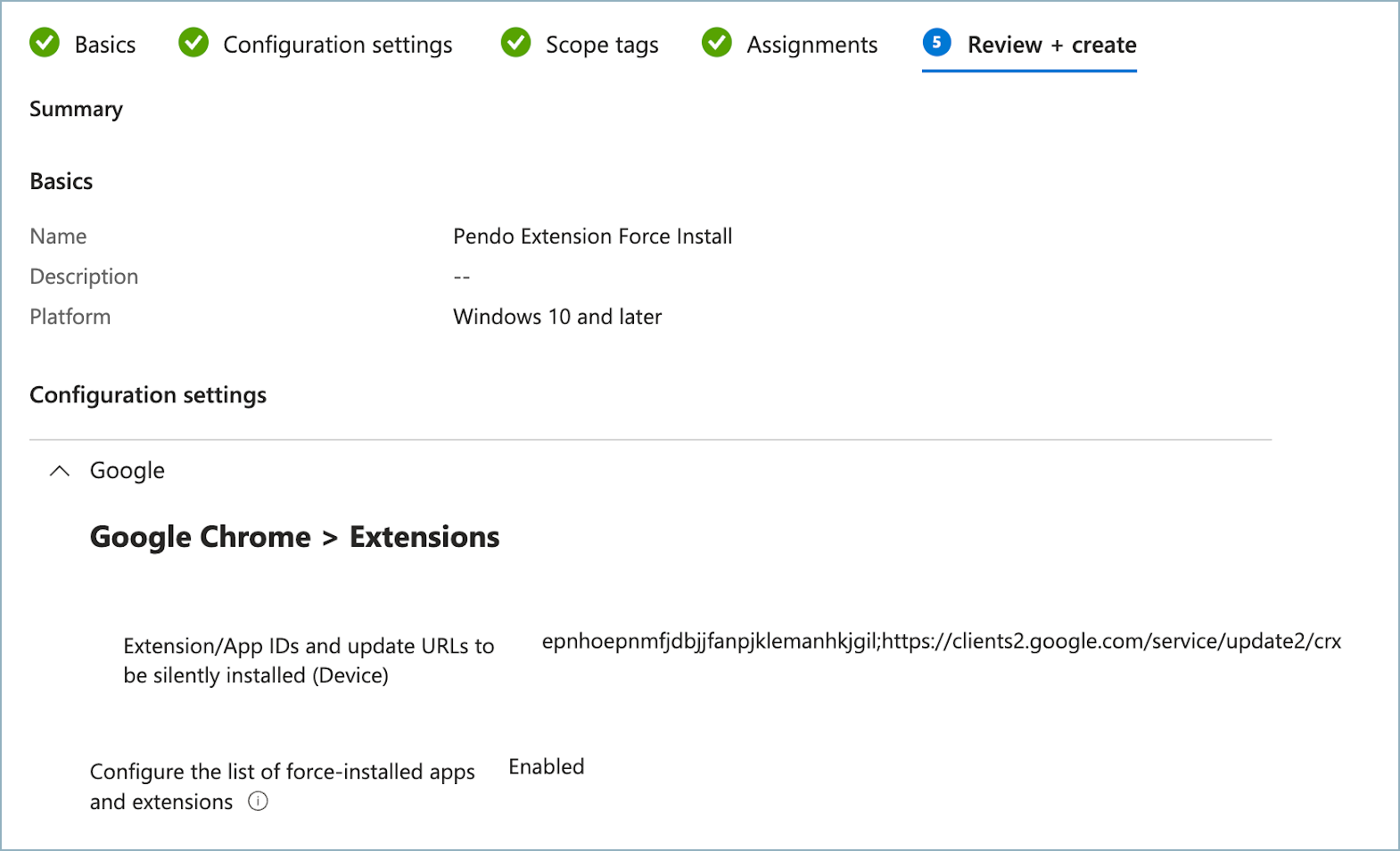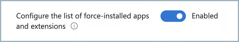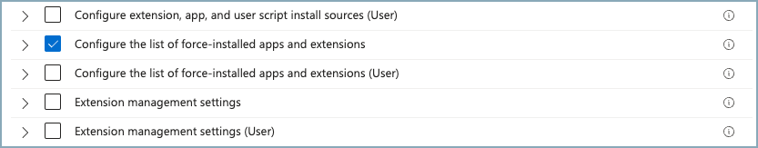 Navigate to Google > Google Chrome > Extensions and select Configure the list of force-installed apps and extensions.