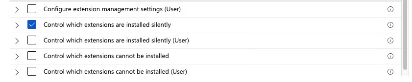 Navigate to Microsoft Edge > Extensions and select Control which extensions are installed silently.