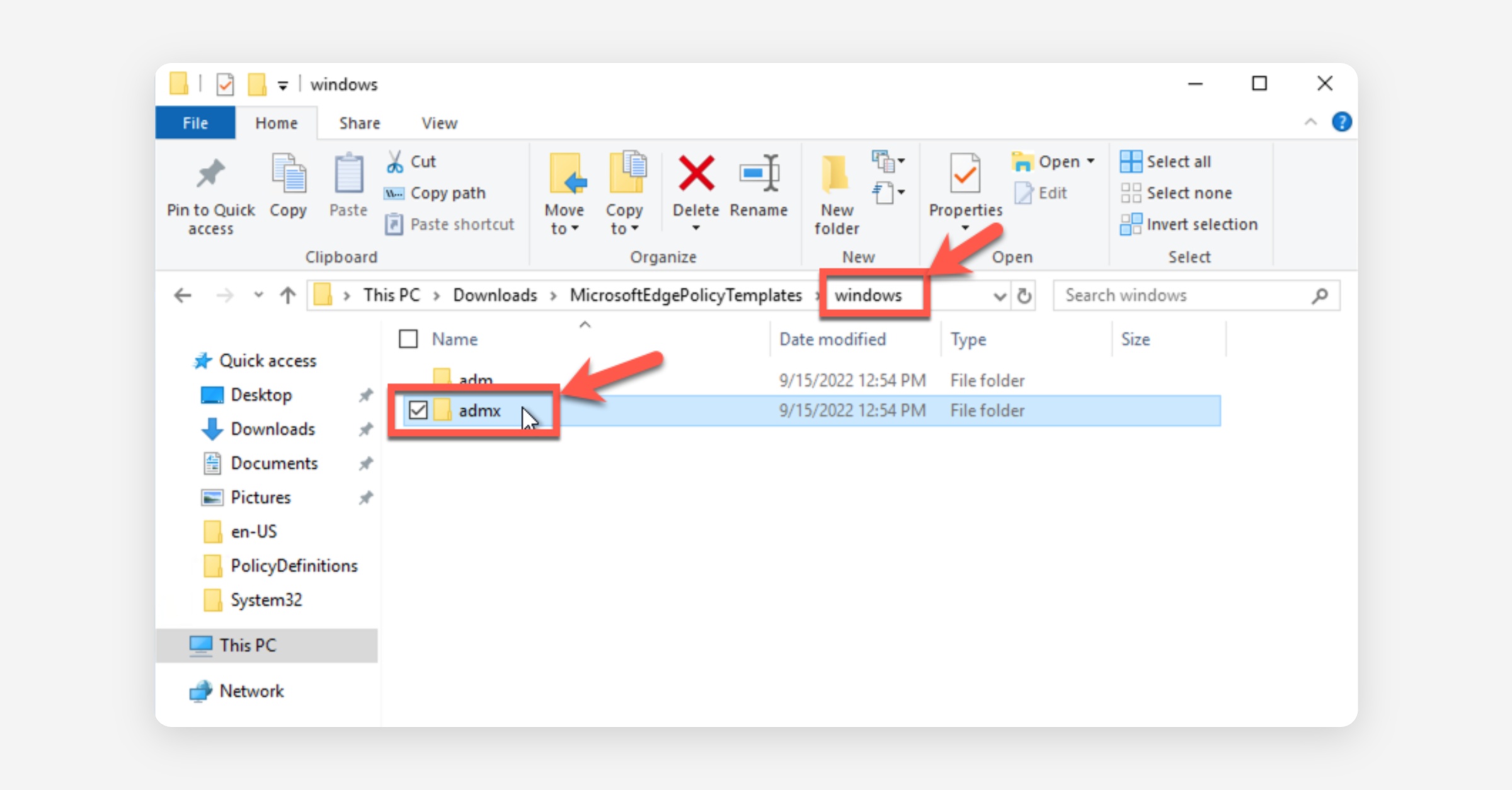 Navigate into MicrosoftEdgePolicyTemplates > windows > admx.