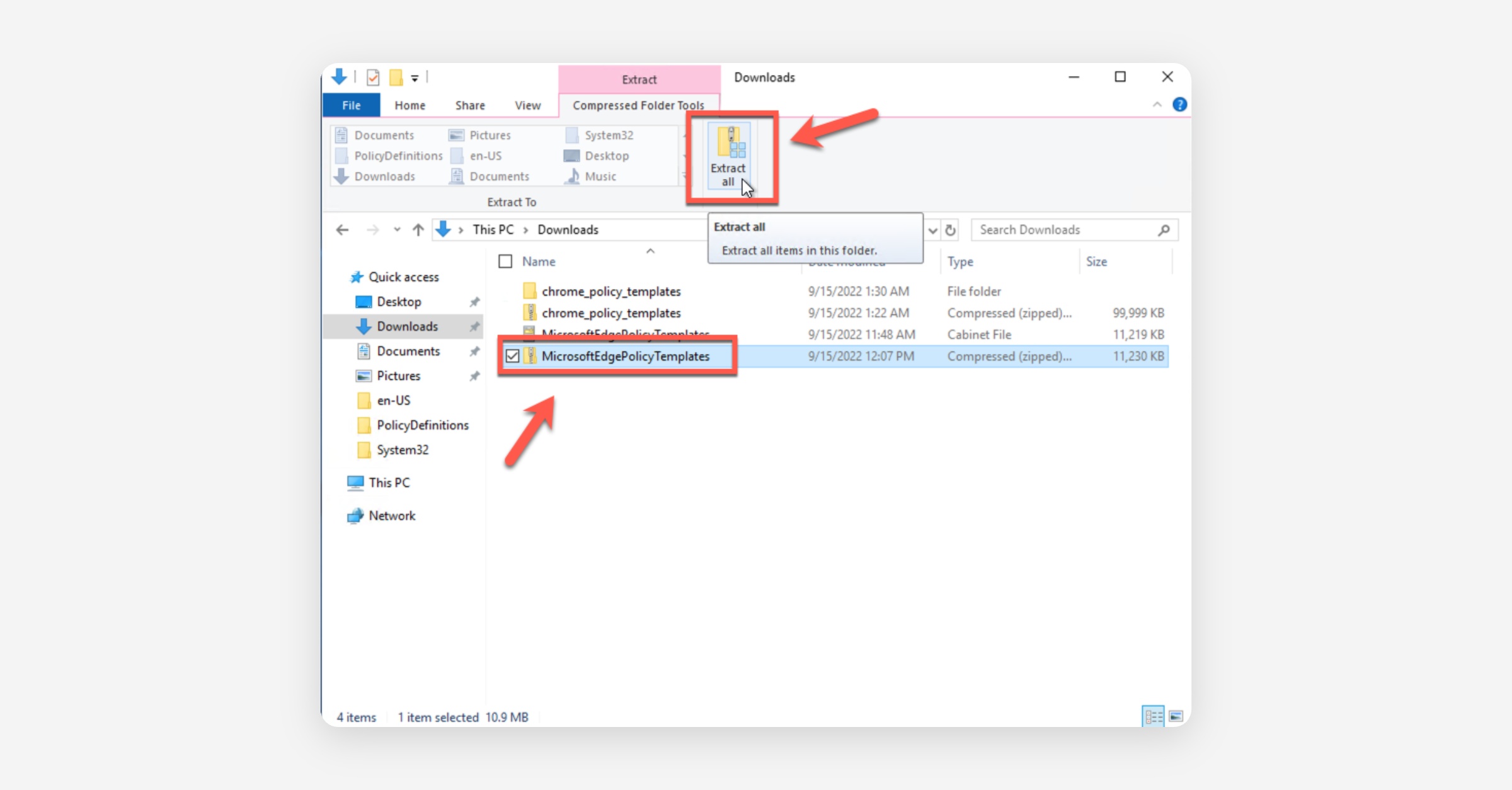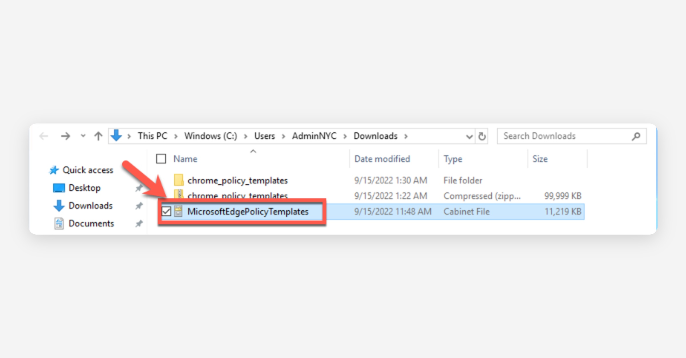 Extract MicrosoftEdgePolicyTemplates to your Downloads folder.