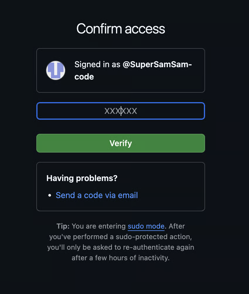 Confirm access by entering the code received