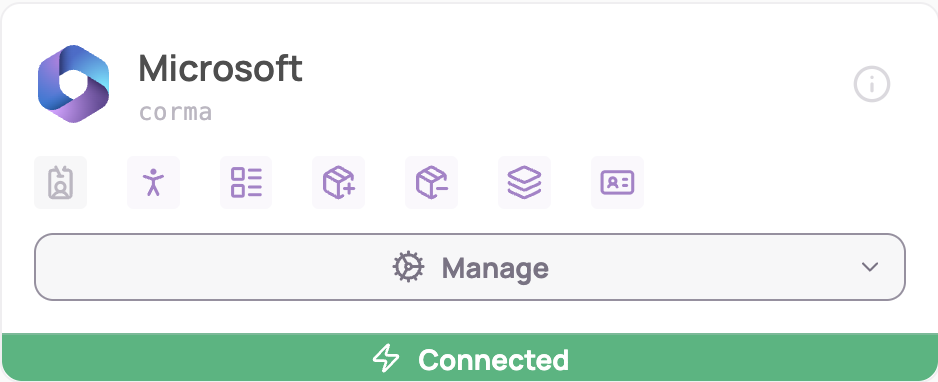 An Application Administrator role is required to connect Microsoft to Corma