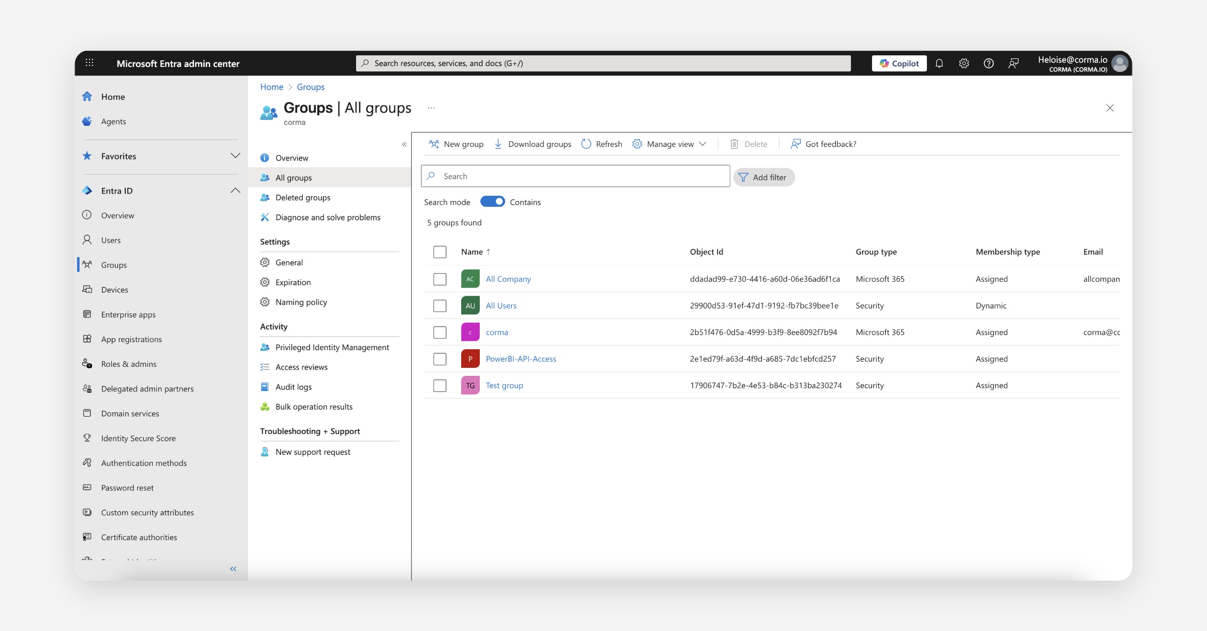 Copy the groups name from Entra and past it in Corma