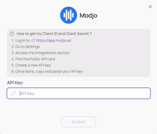 Log in to https://app.modjo.ai/